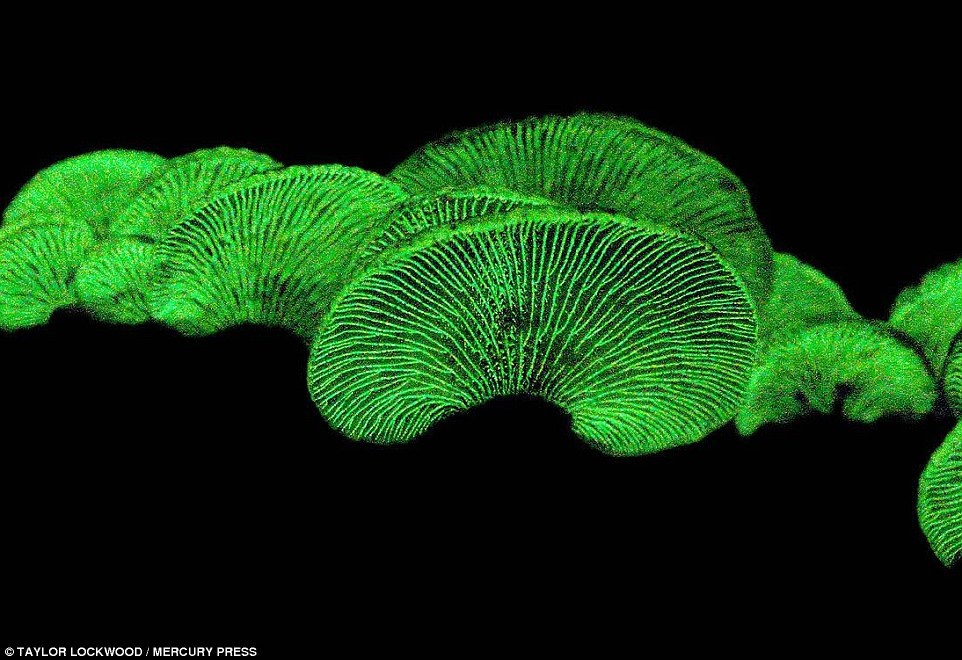 | Taylor Lockwood, một nhiếp ảnh gia 68 tuổi đến từ New Orleans, Mỹ, đã lùng sục khắp các khu rừng nhiệt đới ở Brazil, Trung Quốc và Madagascar để chụp những loài nấm phát quang. |