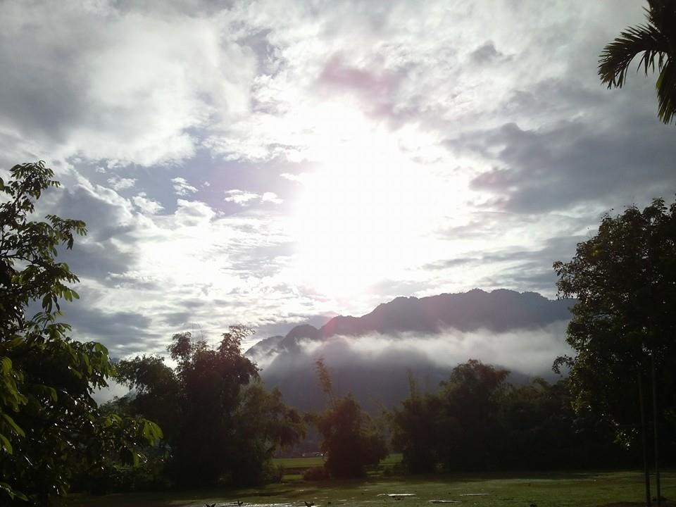 Sớm mai trong trẻo giữa sắc núi, mây trời, dáng nước của thiên nhiên hùng vĩ.