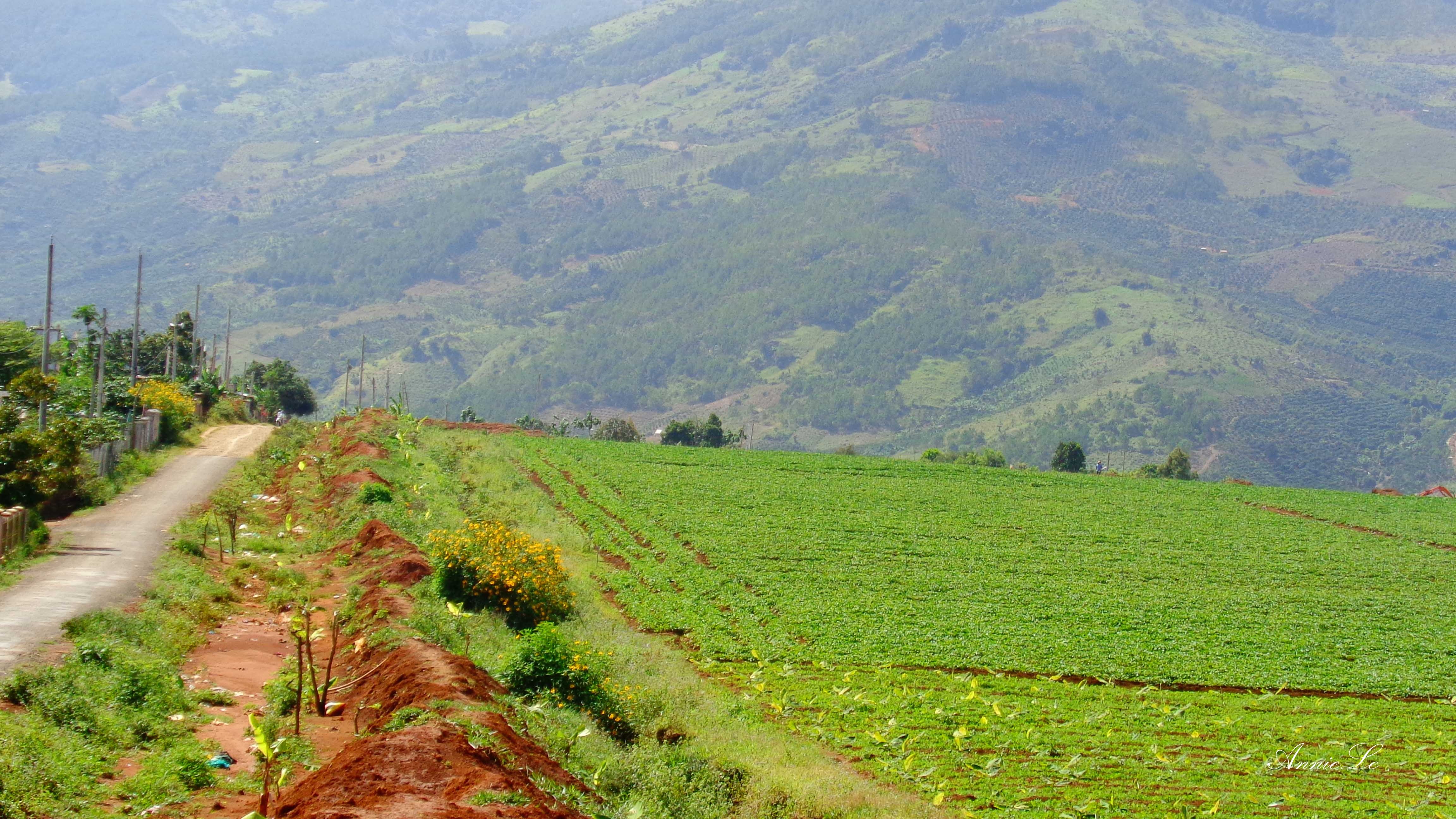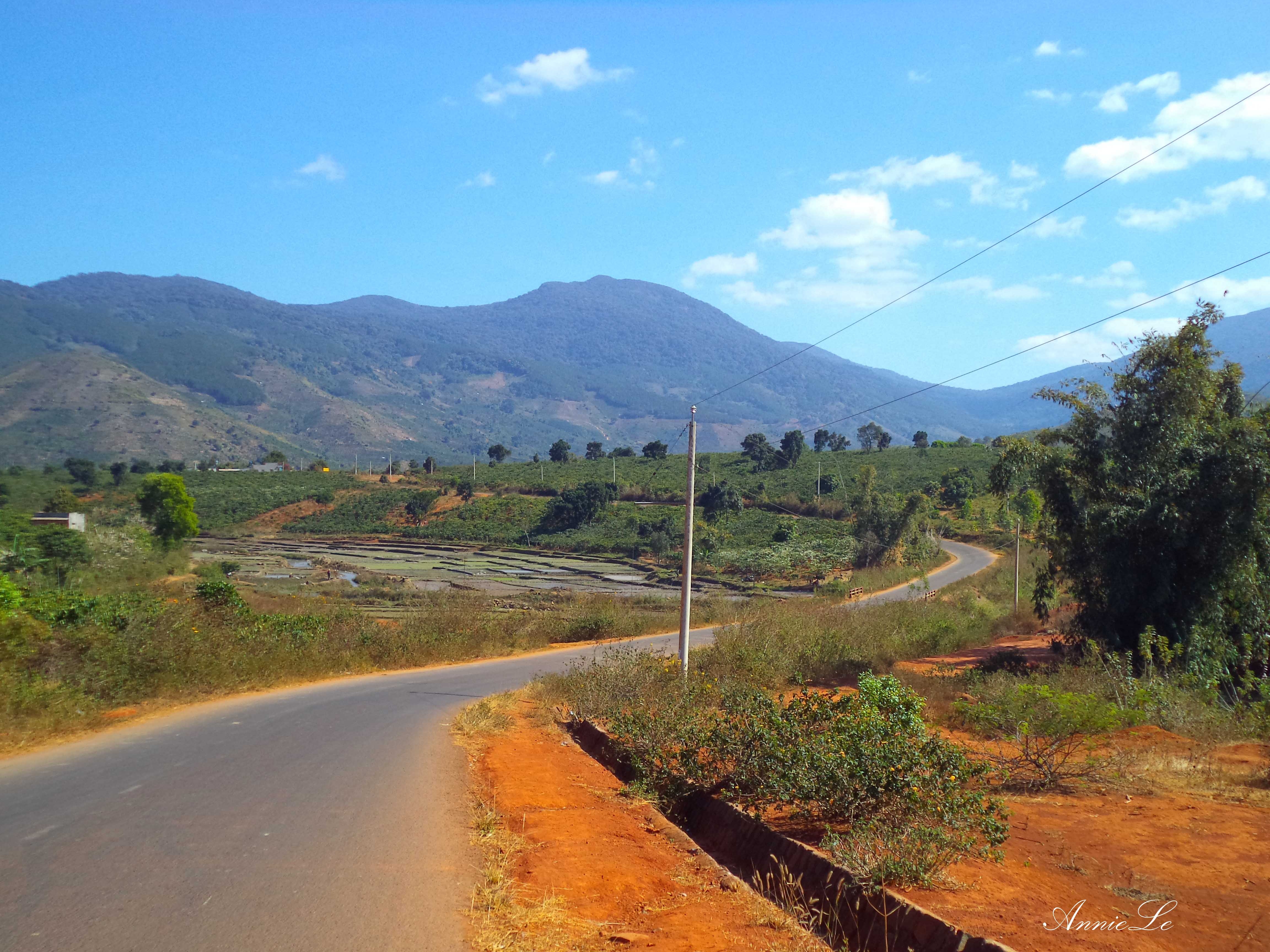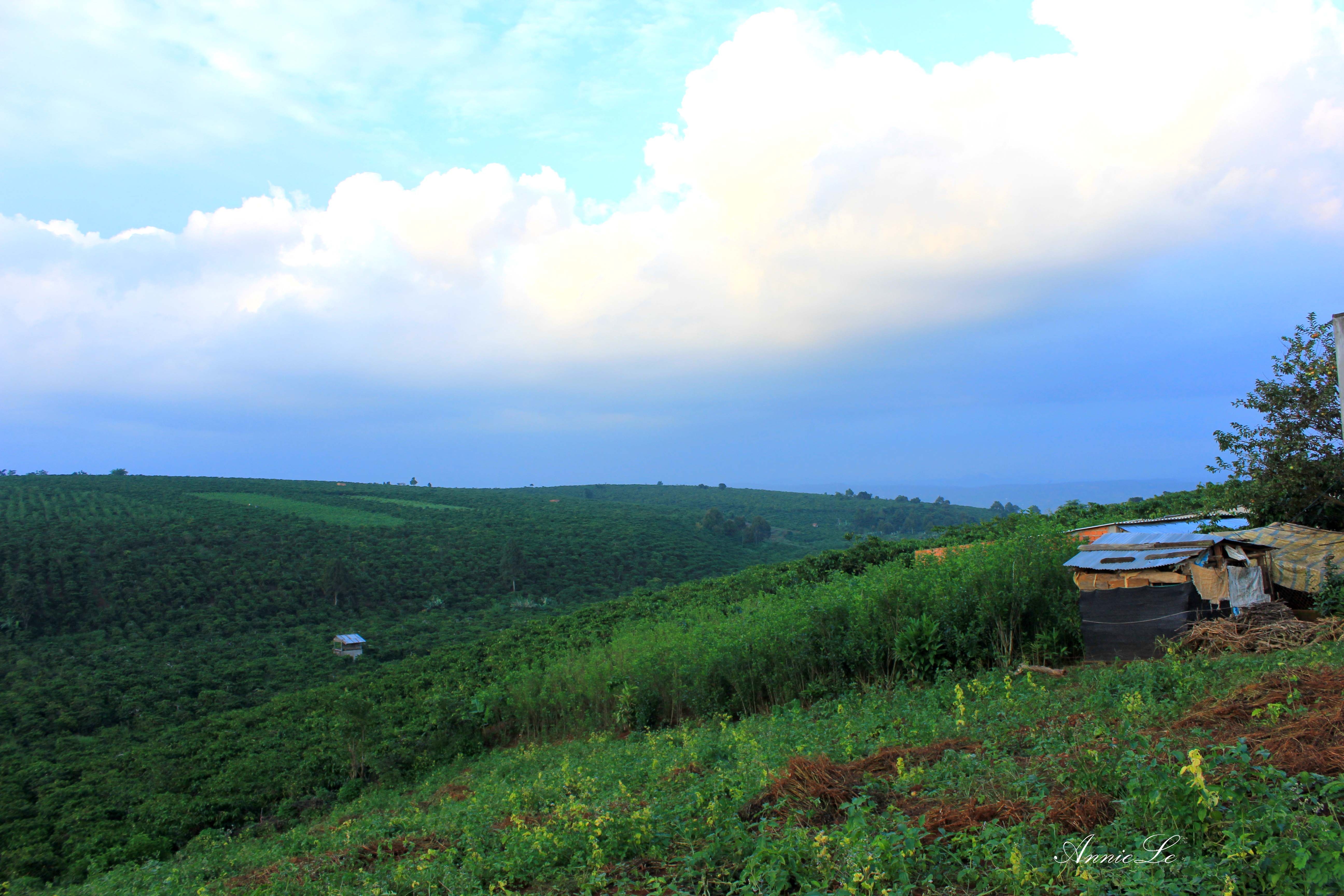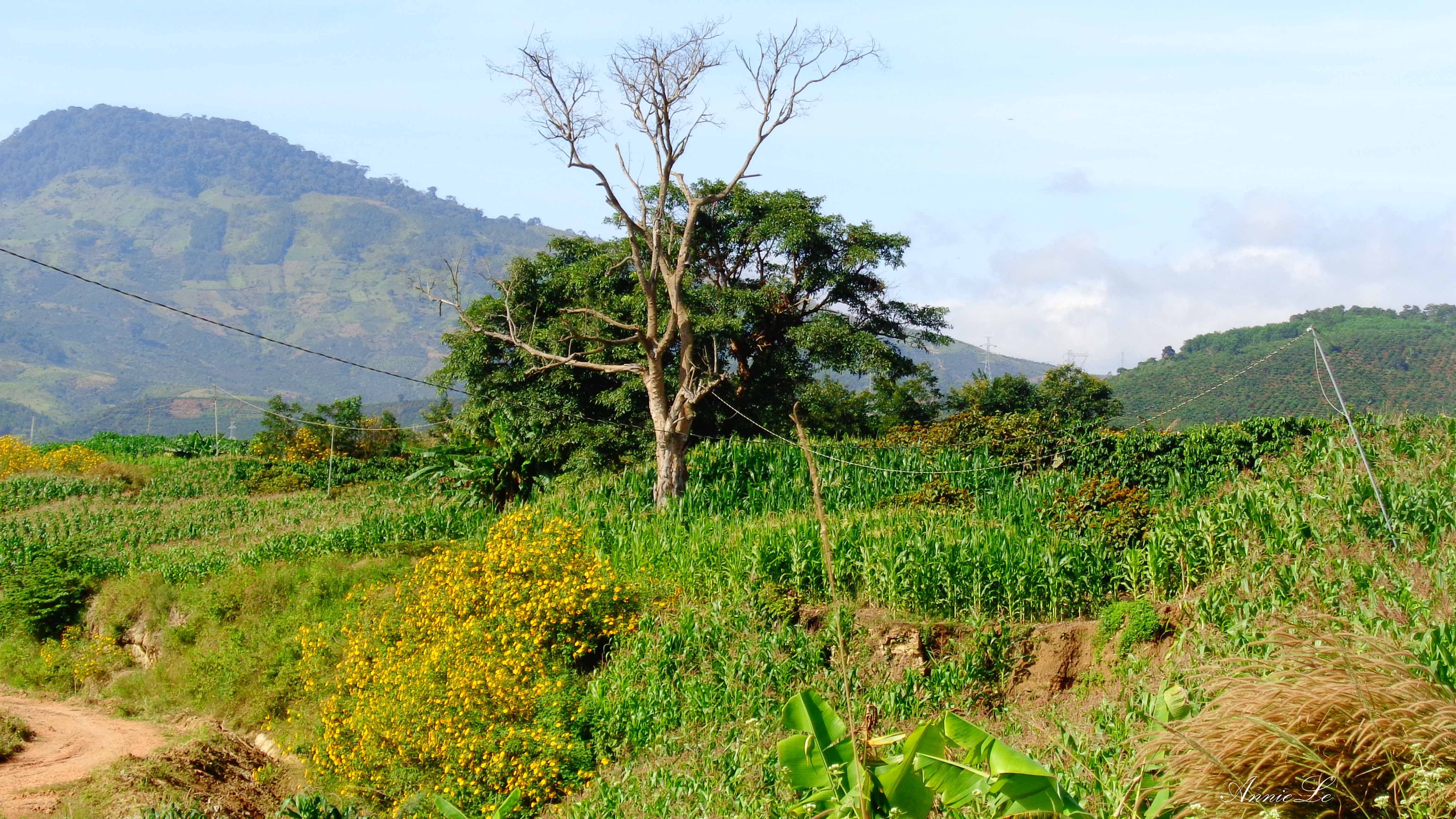 | Lúa, cà phê và núi đồi xen lẫn vào nhau. |