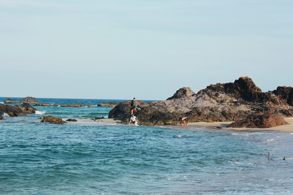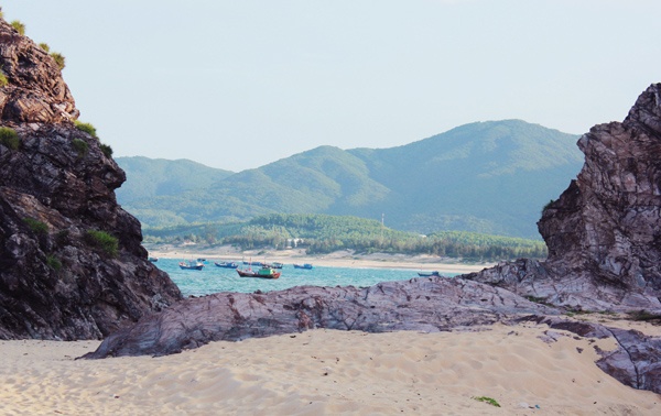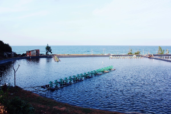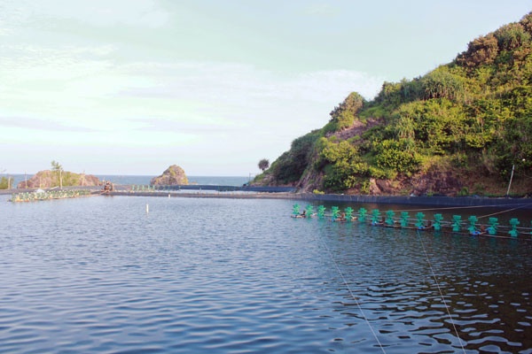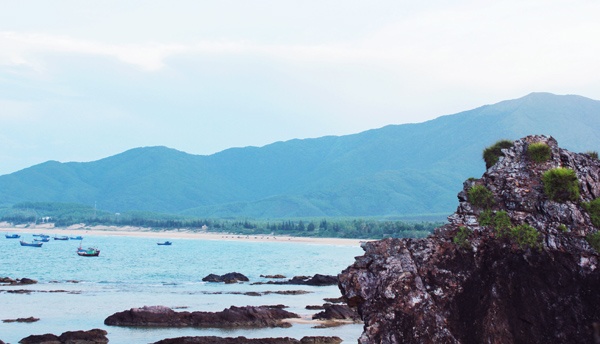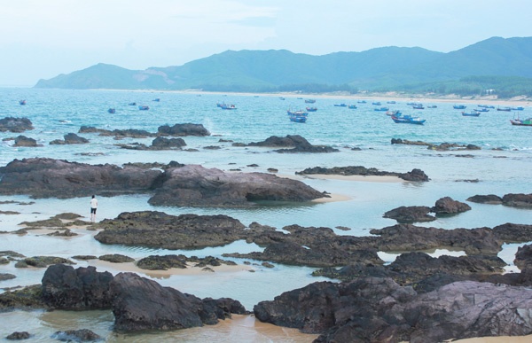 Lác đác trên bờ biển, người dân xây lấp những vuông nuôi tôm. Khi thủy triều rút, mặt biển hiện ra những bãi đá với muôn hình vạn trạng kỳ bí. Nếu đến đây vào tháng giêng, bạn sẽ được ngắm những tảng đá phủ xanh rong biển.
