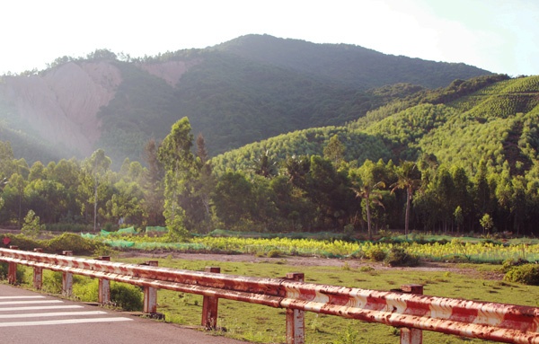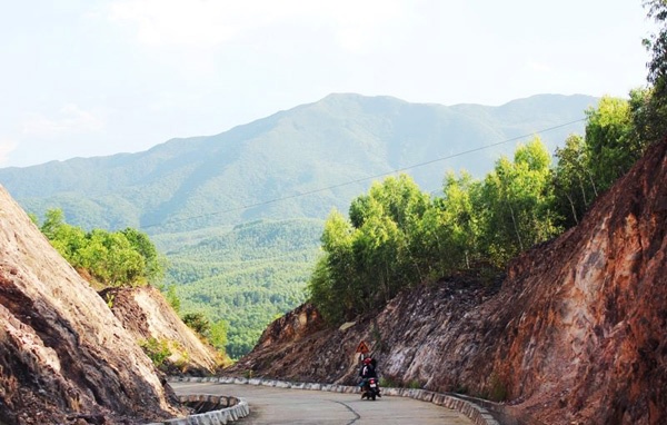 Muốn đến được gành đá phải đi xuyên qua núi Lộ Diêu. Con đường nhựa xuyên núi vừa làm xong, hai bên là vách núi dựng đứng, nhìn về phía trước chỉ thấy con đường nhựa trải dài hút mắt. Vừa vượt qua một khúc cua tay áo, ngó qua bên phải lại thấy mở ra thảm rừng xanh ngút ngàn.