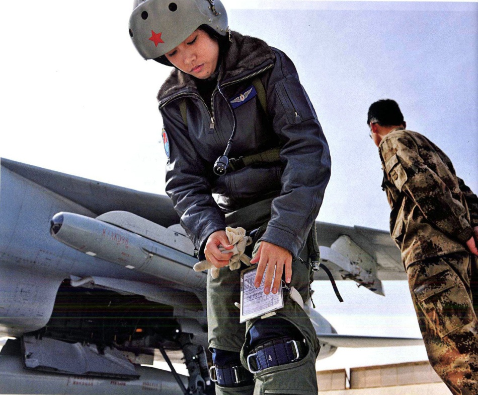 | Nữ phi công Trung Quốc đang kiểm tra các thiết bị cá nhân trước giờ bay. Ảnh: Tuku.military.china |