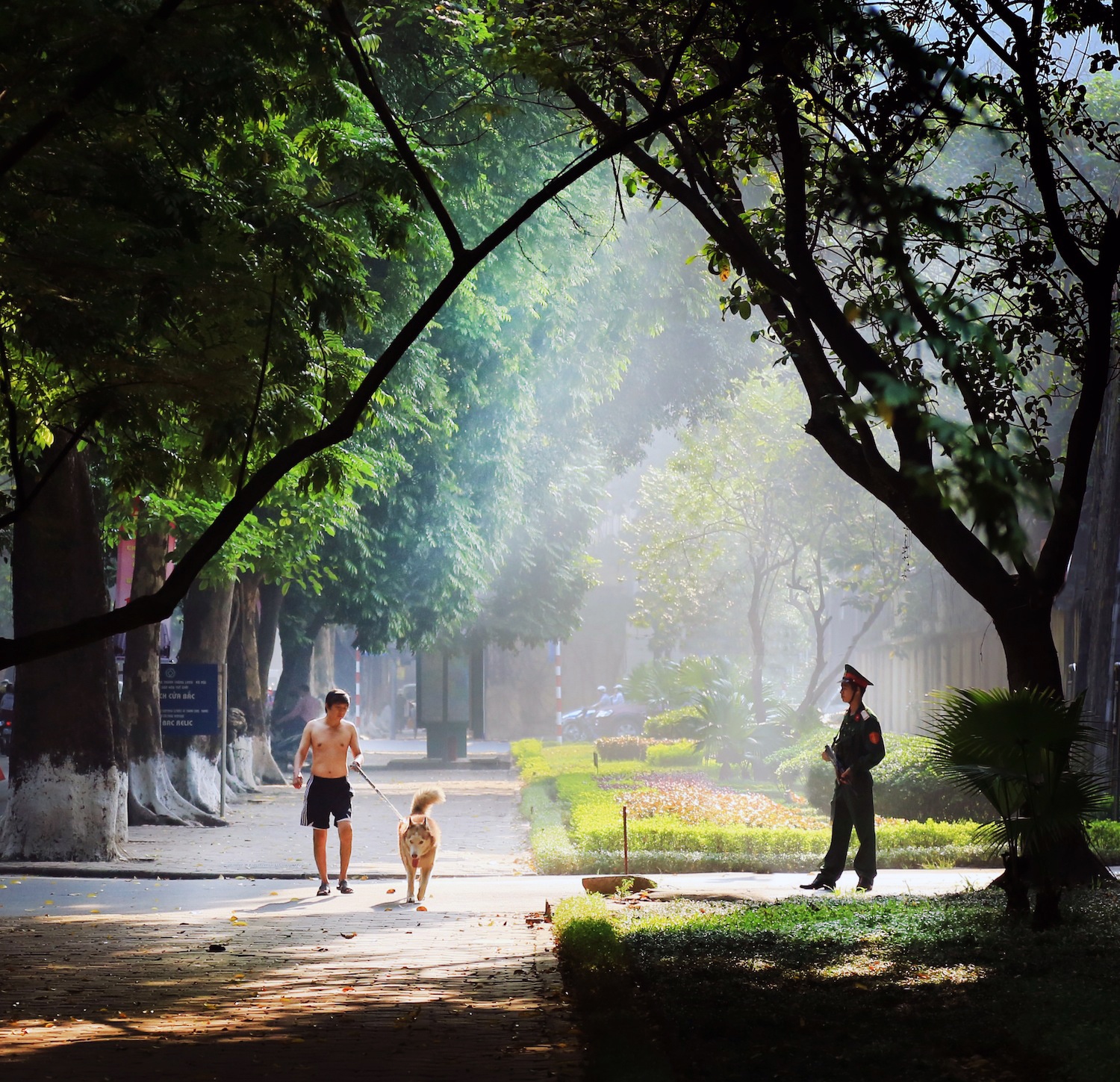 | Hà Nội mùa thu đẹp nhất vào lúc sáng sớm, khi mặt trời mới mọc. Những tia nắng phủ vàng các vỉa hè, góc phố tạo nên cảnh sắc thi vị. |