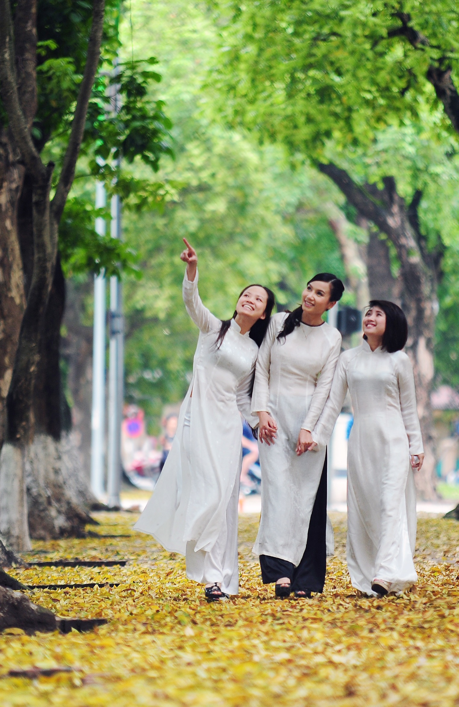 | Những thiếu nữ dịu dàng, xinh đẹp làm tăng thêm sự thi vị của mùa thu. |
