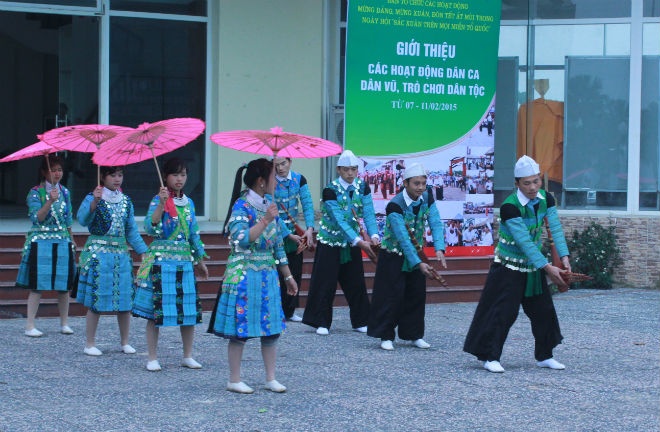 | Đoàn nghệ thuật từ các dân tộc múa hát chào xuân. Ảnh: Cao Thùy Liên |