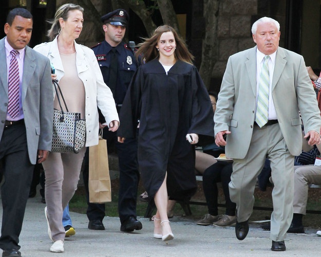 | Emma Watson được bảo vệ cẩn trọng tại lễ tốt nghiệp. |