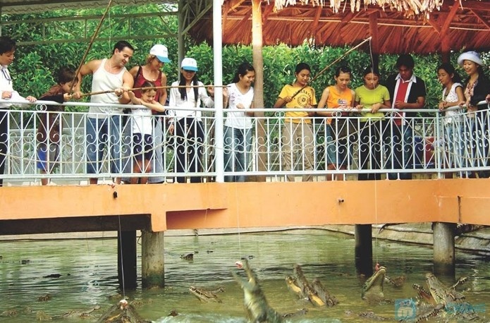 | Khu du lịch Vinh Sang một địa điểm nổi tiếng ở cù lao An Bình. Bạn có thể tham gia các trò chơi cảm giác mạnh như câu cá sấu, cưỡi đà điểu. |