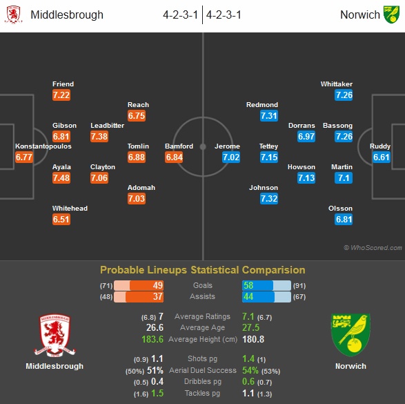 Trước khi trận đấu diễn ra, Norwich City của HLV Alex Neil có thành tích nghèo nàn khi đối đầu Middlesbrough. Họ chỉ thắng một trong 12 lần gặp giữa hai đội, còn lại hòa 5 và thua 6. Mùa này, đội bóng có biệt danh “chim Hoàng yến” thất bại ở cả lượt đi và về (0-4, 0-1).