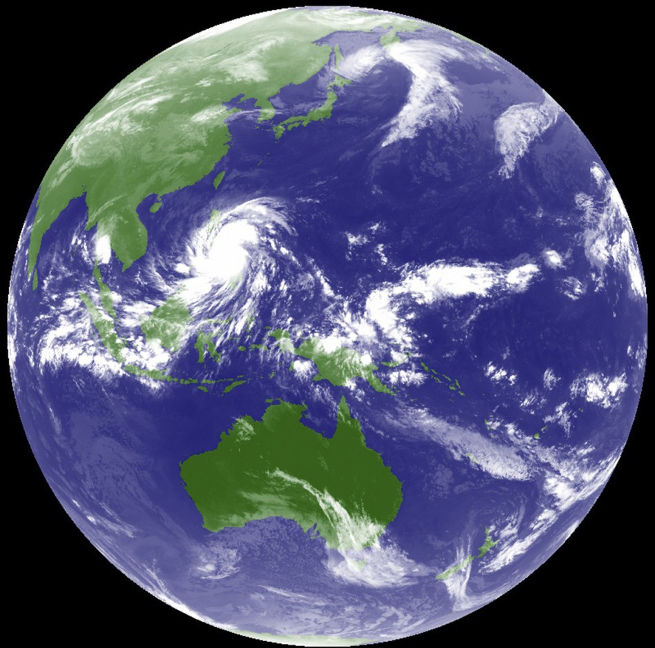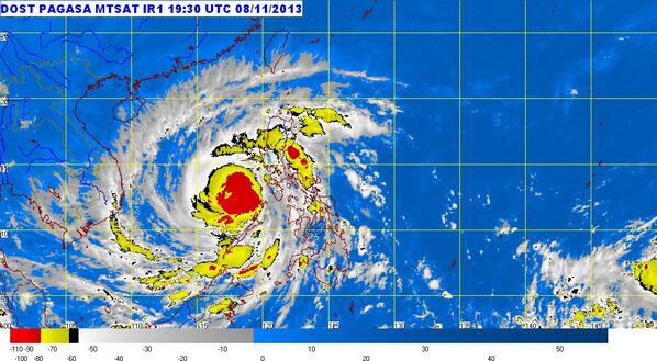 Vệ tinh mô phỏng bão Haiyan lúc 11 giờ sáng ngày 8/11/2013. |