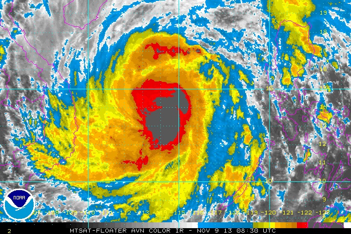 Bức ảnh do vệ tinh của NOAA chụp bão Haiyan sau lúc 15h50’ ngày 9/10 giờ Việt Nam. |
