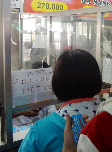 Tại các quầy vé, rất nhiều hành khách đứng xếp hàng chầu chực nhưng đành phải ra về vì nhà xe cho biết không những hết vé trong ngày cao điểm mà một vài tuyến vé ngày thường cũng không còn. Cụ thể, các doanh nghiệp vận tải đi miền Trung đã thông báo hết vé từ cuối tháng 11 như Thuận Thảo (TP.HCM đi các tỉnh từ Phú Yên đến Vinh), doanh nghiệp Cúc Tư (TP.HCM - Phú Yên) chỉ sau 3 ngày mở bán.