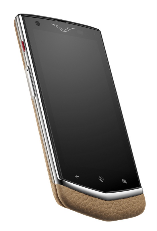 Bên cạnh đó, model này cũng được ốp bằng da bê thượng hạng. Vertu chọn lựa kỹ lưỡng các nguyên liệu da của châu Âu và hợp tác chặt chẽ với xưởng thuộc da, máy có các màu cappuchino, cam, đỏ mâm xôi, mocha, và đen.