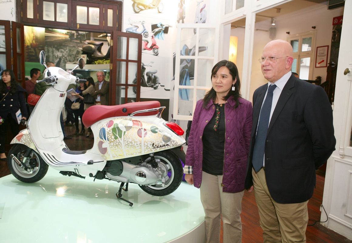 | Mẫu Vespa Primavera đặc biệt này hiện được trưng bày tại Trung tâm Văn hoá Ý, đường Lê Phụng Hiểu, quận Hoàn Kiếm, Hà Nội, cùng nhiều mẫu xe Vespa nổi tiếng khác của hãng xe Ý. |