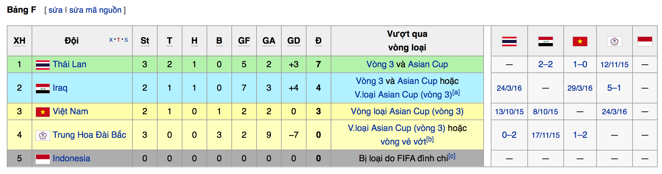Ở trận đấu gần đây nhất, ĐT Việt Nam đã giành chiến thắng vất vả 2-1 trên sân khách của Đài Loan (Trung Quốc). Sau trận thắng này, ĐT Việt Nam tiếp tục đứng thứ 3 tại bảng F.