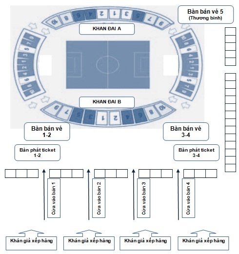 | Sơ đồ bàn phát ticket và bàn bán vé trực tiếp đến người hâm mộ ngày 19/7. |