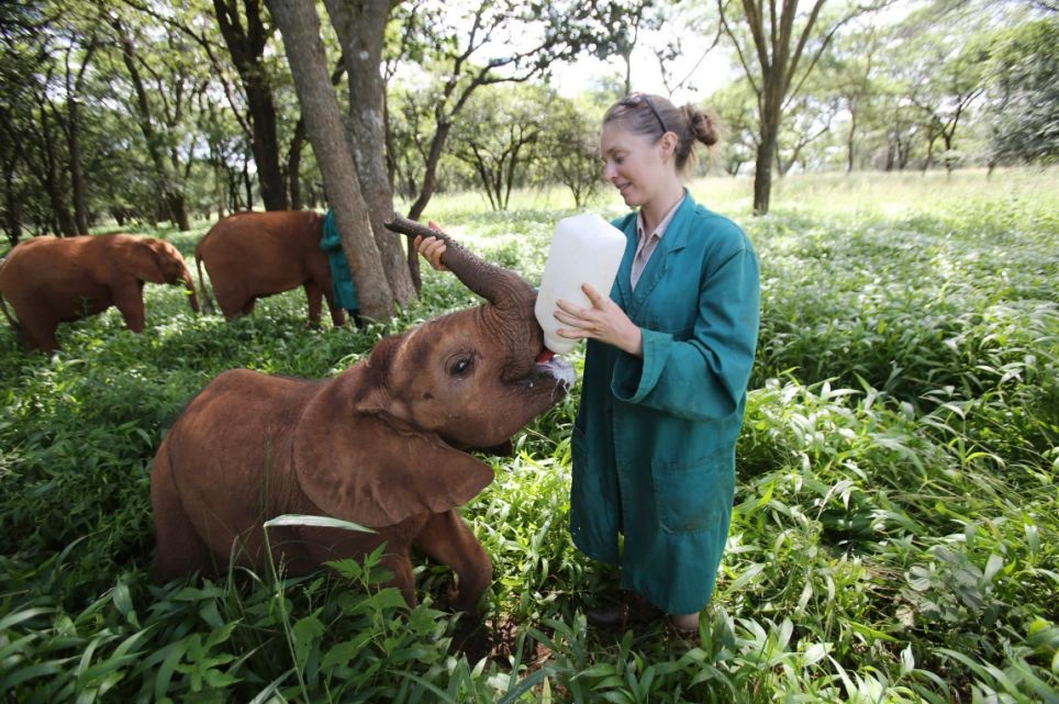 | Tại đây cô chăm sóc những voi con mất mẹ do hoạt động của bọn săn trộm. |