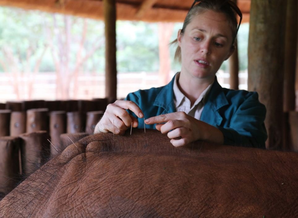 | Khi một con voi mất cảm giác ở chân, Rachael châm cứu để phục hồi cảm giác của nó. |