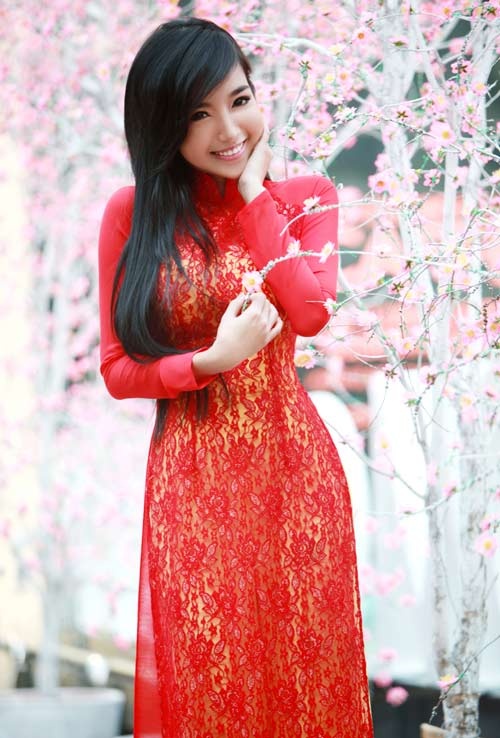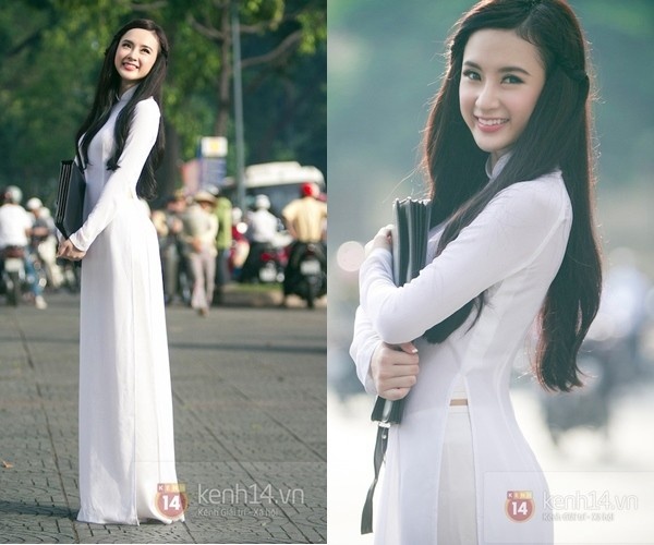 | Elly Trần duyên dáng, xinh xắn trong chiếc áo dài. |