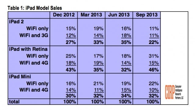 Theo một nghiên cứu mới công bố của CIRP, ngay cả khi người dùng đổ xô đi mua những mẫu iPad mới có màn hình Retina và phần cứng "khủng", một bộ phận không nhỏ người dùng vẫn tỏ ra hài lòng với chiếc iPad 2. Model này chiếm 22% số lượng iPad được bán ra tại Mỹ trong quý 3 năm 2013. Một con số không tồi cho một sản phẩm đã lỗi thời.