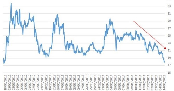 Đóng cửa hôm qua (14/5), HAG của Tập đoàn Hoàng Anh Gia Lai (HAGL) có giá 18.000 đồng/ cổ phiếu, giảm 19% từ đầu năm. Kể từ đầu năm 2012, đây là lần đầu tiên giá cổ phiếu này rơi xuống dưới mức 20.000 đồng xa đến vậy.