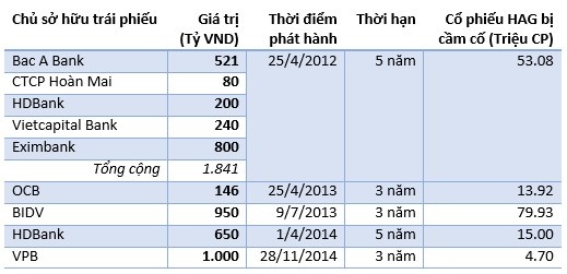 Các trái phiếu này được phát hành từ giữa năm 2012 đến cuối năm 2014, trong phần lớn thời gian này, giá HAG luôn ở trên mức 20.000 đồng/cổ phiếu. Điều này có nghĩa là ở mức giá HAG hiện tại, giá trị các tài sản bảo đảm bằng cổ phiếu này đã giảm ít nhất 20%.