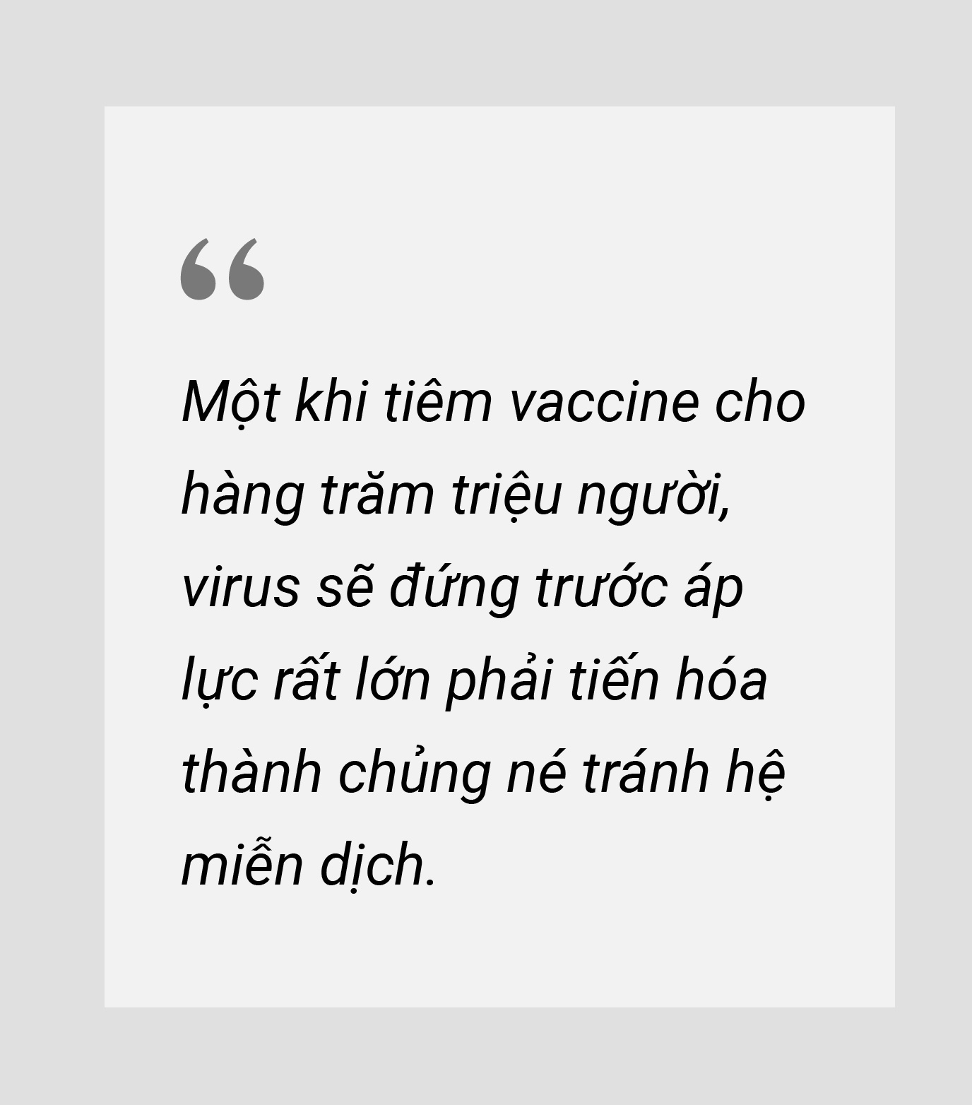 Tuy nhiên, vẫn có khả năng những biến chủng thực sự đáng quan ngại xuất hiện thêm trong tương lai, bởi virus chuẩn bị đối mặt với các loại vaccine. Vaccine mang tới sức ép chọn lọc đối với virus.