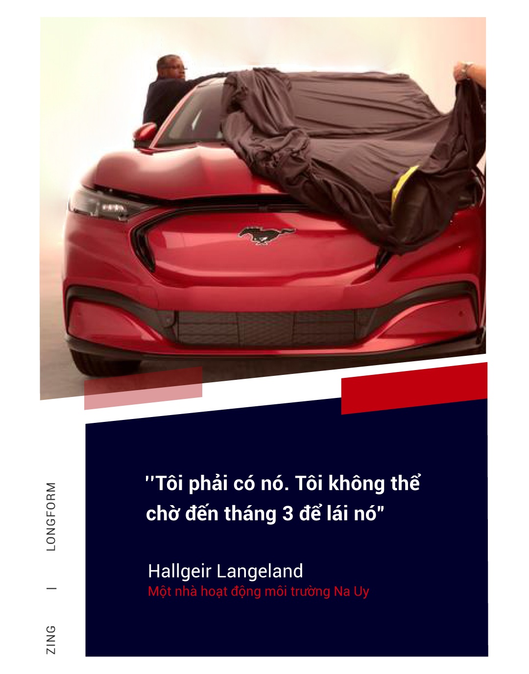 Ông Hallgeir Langeland, 65 tuổi, một cựu chính trị gia kiêm nhà hoạt động môi trường Na Uy, không sở hữu ôtô trong suốt 25 năm. Nhưng khi Ford tung ra phiên bản Mustang chạy hoàn toàn bằng điện hồi năm ngoái, ông đã không cần nghĩ nhiều. "Tôi phải có nó. Tôi không thể chờ đến tháng 3 để lái nó", ông Langeland nói khi nhớ lại chiếc Mustang ông từng lái khi còn trẻ.