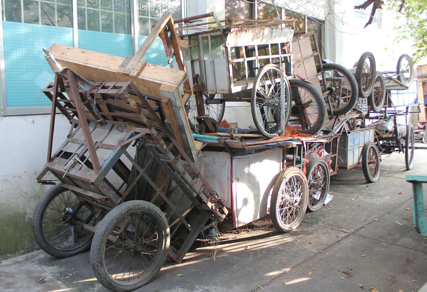 | Chỉ riêng trong 4 tháng cuối năm, hàng chục xe tự chế bị phường 7, quận 8 tịch thu. Số xe này đều không có người đến nhận và đang chờ thanh lý sắt vụn. Ảnh: Zen Nguyễn. |