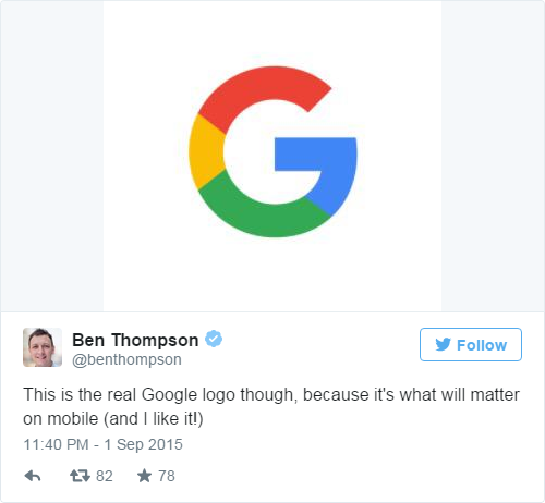 Cũng như các tên tuổi khác trong làng công nghệ, Google làm mới biểu tượng của mình theo hướng đơn giản hóa nhưng vẫn làm bật bản sắc riêng, đặc biệt thân thiện với mọi thiết kế. Phông chữ mới được cho là sẽ làm hài lòng các nhà thiết kế, giúp họ tối ưu với màn hình nhỏ, nâng cao trải nghiệm của người dùng trên các thiết bị di động khi sử dụng ứng dụng, dịch vụ từ Google.