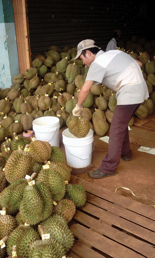Tại một vựa sầu riêng lớn ở thị xã Buôn Hồ, tỉnh Đăk Lăk, một nhóm người TQ xì xồ nói chuyện, những người làm tại vựa đang tất bật chọn, phân loại hàng, dán nhãn, đóng gói sầu riêng vào thùng carton in tiếng Hoa. Sự có mặt của những lái buôn TQ đã trở nên quen thuộc với những người dân nơi đây. Trong quán nước, một tài xế xe container nói bâng quơ, “Mới hôm qua thằng A Toòng (một người đàn ông TQ trong nhóm) còn ở vựa thanh long dưới Phan Thiết nay đã lên đây?”.