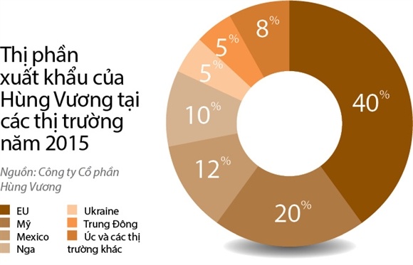 Thị phần xuất khẩu của Hùng Vương tại các thị trường năm 2015 |