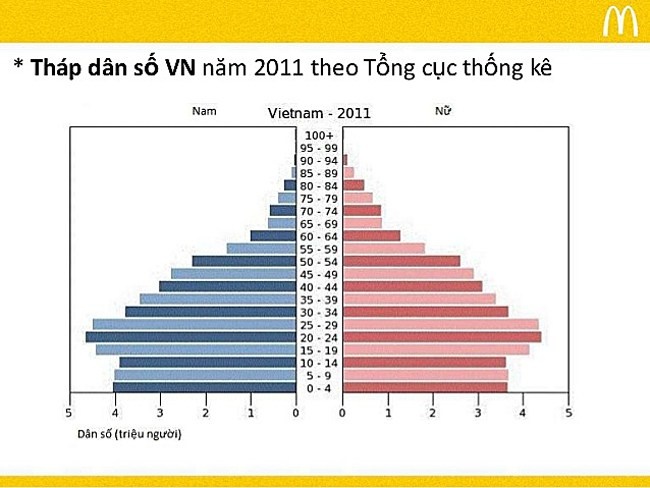 Ở Mỹ, cứ 4 người thì có 1 người ghé vào McDonald’s mỗi ngày nhưng tại Việt Nam, thị trường thức ăn nhanh còn sơ khai. Theo một nghiên cứu của Nielsen, chỉ có 8% người Việt Nam dùng thức ăn nhanh và chỉ dùng từ 1-3 lần/tháng. Trong khi đó theo nghiên cứu của VinaResearch năm 2012, nhóm người dùng thức ăn nhanh nhiều nhất tại Việt Nam có độ tuổi từ 16-23. Và trong 113 người ở độ tuổi từ 18-25 được hỏi qua khảo sát thì có đến 102 người biết đến McDonald’s.