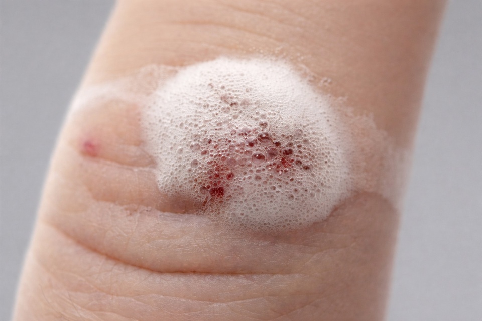 Thói quen đổ oxy già vào vết thương tưởng vô hại lại có thể khiến vết thương lâu lành, tăng nguy cơ sẹo và nhiễm trùng. Ảnh: Losreplicantes. |