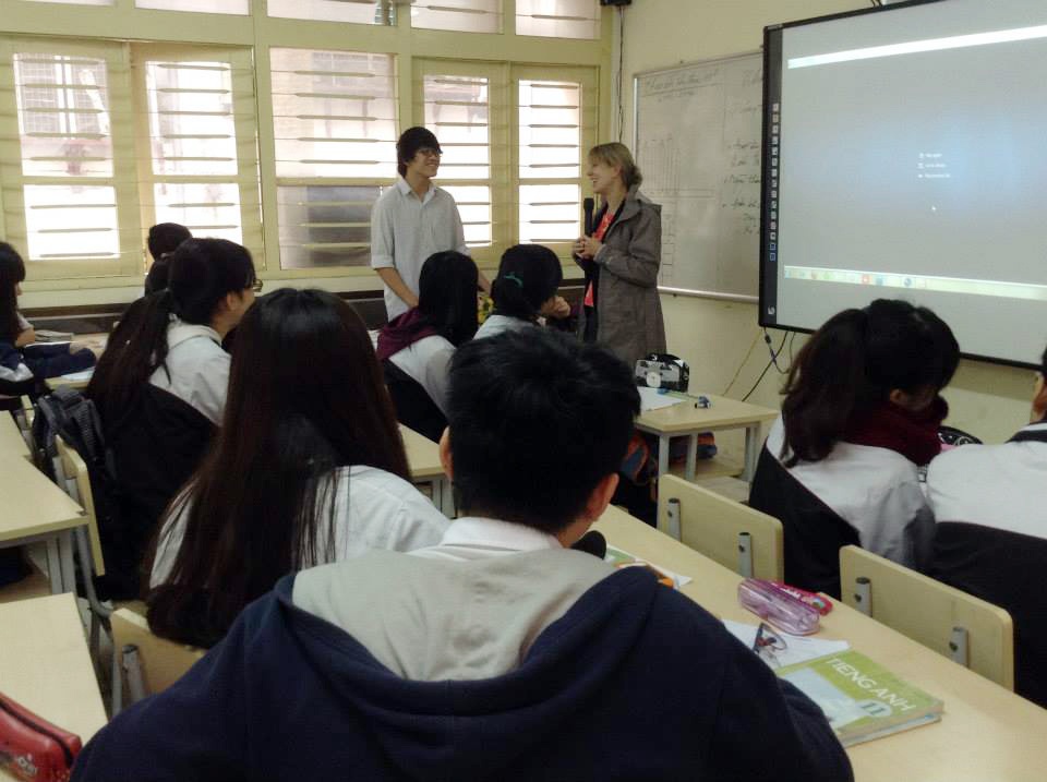 | Với việc thường xuyên được rèn luyện kỹ năng nói, học sinh Thực nghiệm có thể tự tin giao tiếp với chuyên gia người nước ngoài. Đây là điều mà rất ít học sinh Việt Nam có thể làm được. |