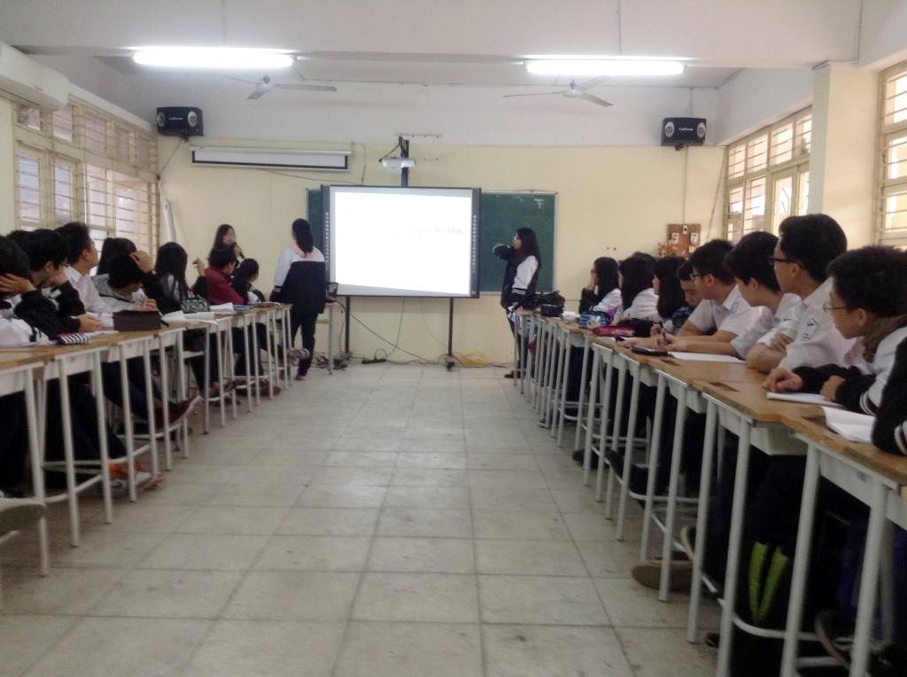 | Bài thuyết trình được các học sinh chuẩn bị trên máy tính, có hình minh họa sinh động. Đặc biệt, một nhóm học sinh còn làm phim ngắn để trình bày ý tưởng của mình trong giờ tiếng Anh. |