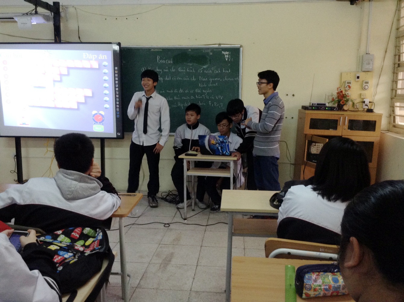 Vừa qua, Viện khoa học giáo dục Việt Nam đã tổ chức buổi hội thảo sơ kết một năm trường THPT và PTCS Thực nghiệm về dự án phát triển chương trình giáo dục nhà trường phổ thông. Đây là một trong 6 trường trên toàn quốc thực hiện thí điểm dự án này theo hướng dẫn 791 của Bộ GD-ĐT với định hướng tăng cường năng lực học sinh. Đây là hình ảnh trong một giờ Anh văn của học sinh trường THPT Thực nghiệm. Thay vì ngồi nghe giáo viên giảng, các bạn học sinh được chia nhóm, chuẩn bị bài thuyết trình.