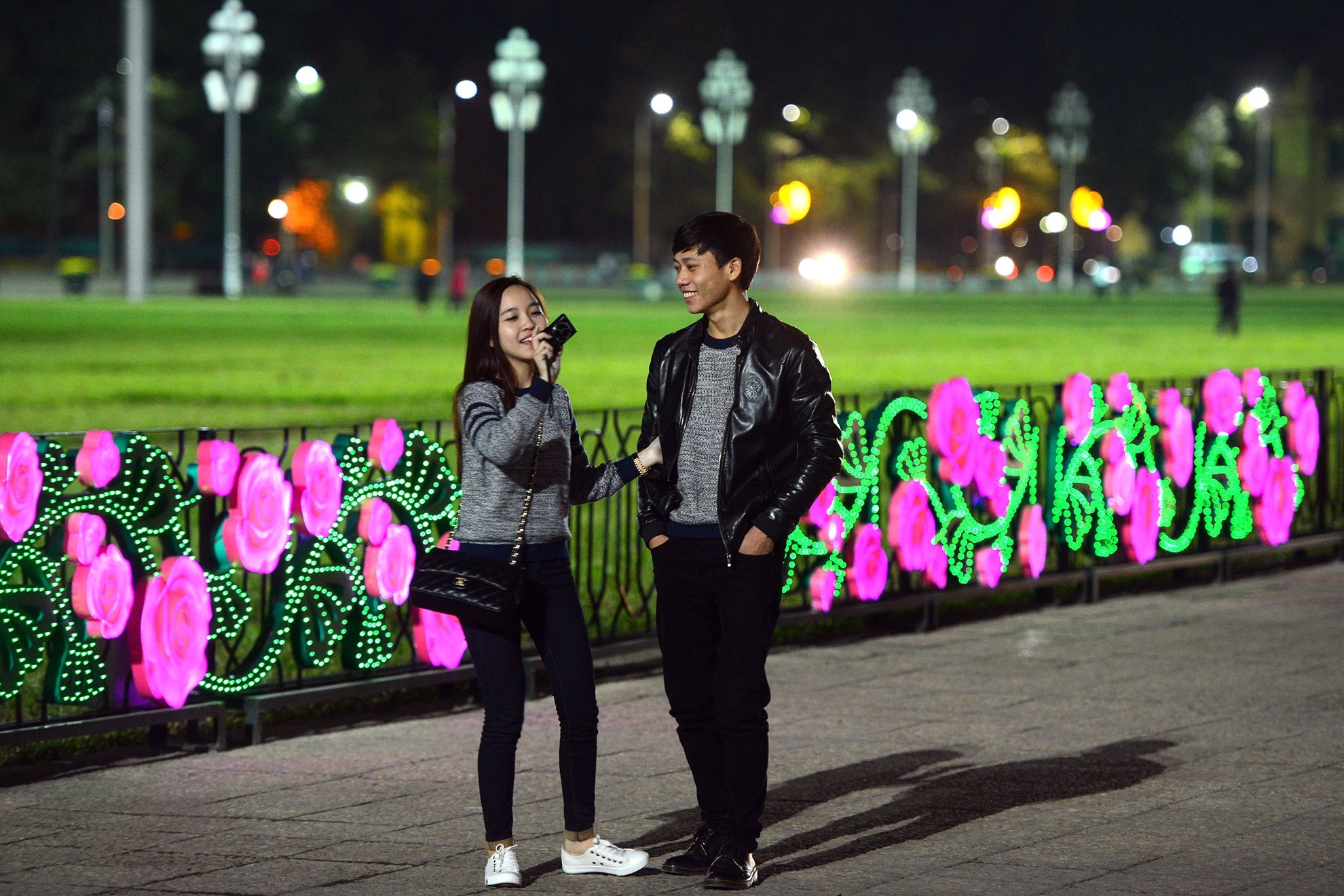 Trước quảng trường Lăng Chủ tịch Hồ Chí Minh, hàng trăm dải hoa hồng mô hình lấy ý tưởng từ vườn hồng cũ trên phố Bắc Sơn cũng vừa bị tháo dỡ ngày 17/1. Ảnh: Anh Tuấn. |
