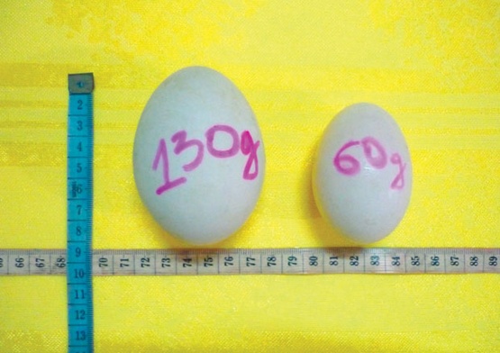 Thỉnh thoảng trong cơ thể con vật cũng rụng hai trứng, như trường hợp sinh đôi ở người nhưng tỷ lệ ở gia cầm nhiều hơn. Trong vài ba quả có một quả lớn hơn là chuyện bình thường, “Nếu sau khi sinh trứng bất thường, một thời gian sau con vật bị ốm chết đi thì mới là bất thường đáng lưu ý” - ông Giao lưu ý.