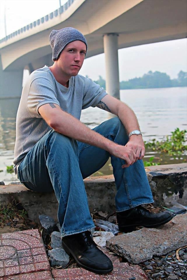 Philip Veinott bên chân cầu ở TP HCM. Ảnh: NVCC. |