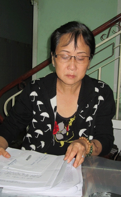 | Bà Diệp Thị Cẩm Tú với tập giấy nhận nợ 25 tỷ đồng của vợ chồng bà Liễu. |