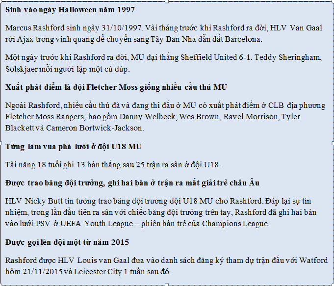 Tối hôm qua, Rashford lập tiếp một cú đúp nữa, trở thành cầu thủ trẻ nhất ghi bàn ngay trong trận ra mắt của MU. Kỷ lục Rashford lập được ở mốc 18 tuổi 120 ngày. Kỷ lục cũ do James Wilson lập khi tròn 18 tuổi 157 ngày.
