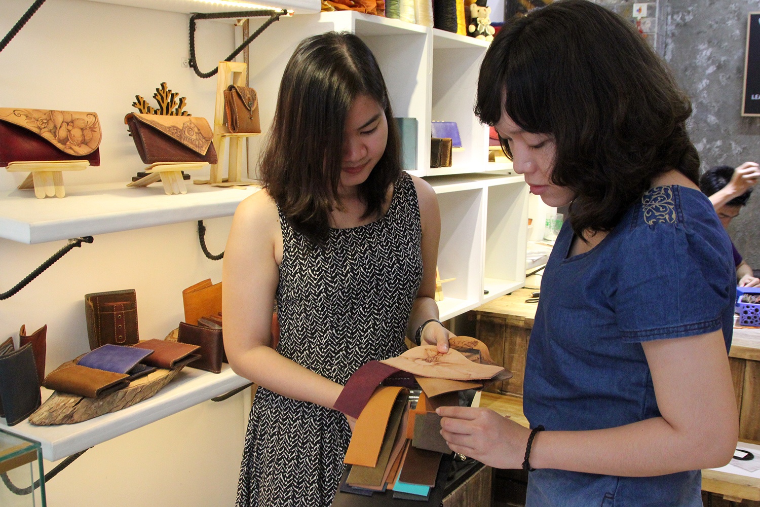 | Chị Thảo cho biết thêm, cửa hàng nhận khá nhiều đơn hàng mua ví, túi xách da có trang trí theo yêu cầu. Chị đã bán được hơn 1.000 sản phẩm chỉ sau 4 tháng. Vào dịp 8/3 này, xưởng phải sản xuất liên tục mới kịp giao hàng cho khách.