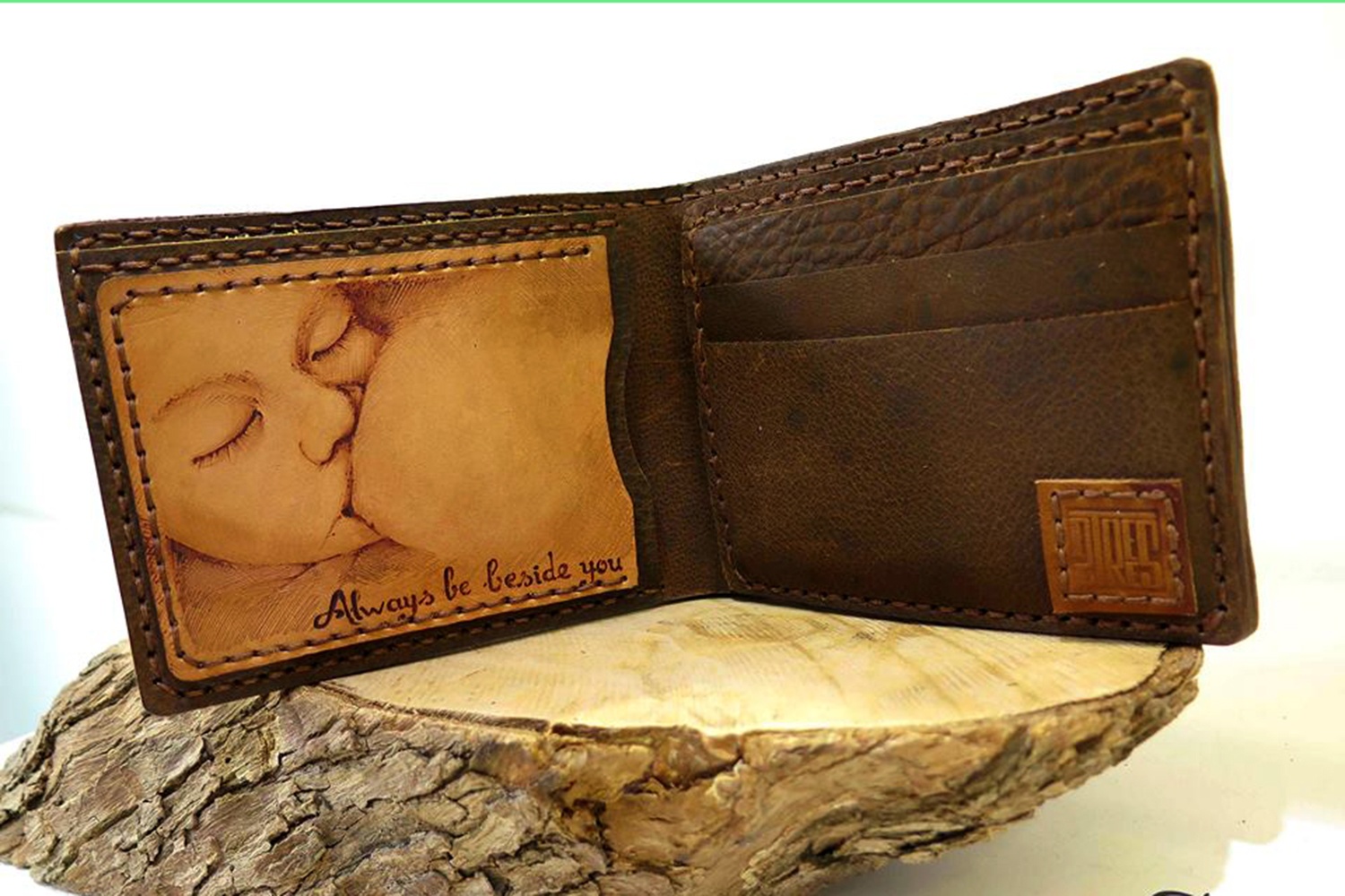 Những chiếc ví da làm thủ công có in chính hình ảnh của người mua với giá 1,5 triệu đang khá đắt hàng tại TP HCM sát ngày 8/3.