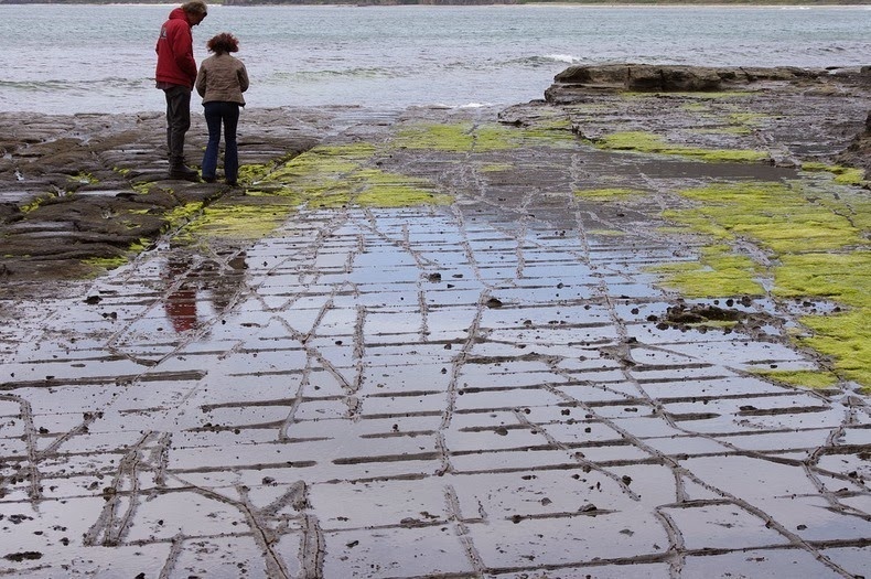 | Nét đặc trưng hiếm có này xảy ra trên diện tích đá bằng phẳng ở eo đất hẹp Eaglehawk Neck, khi trông vào rất giống nhân tạo, nhưng trên thực tế vỉa hè lát đá được hình thành bởi những nguyên nhân tự nhiên. |
