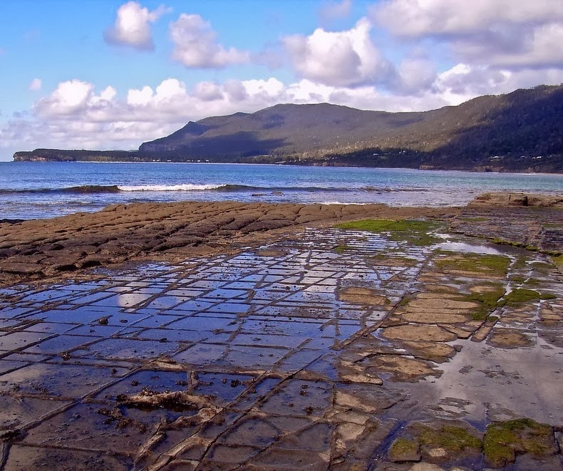 Bờ đá tại hòn đảo Tasmania được thiên nhiên đẽo gọt tựa như một vỉa hè lát đá tuyệt đẹp chạy dài ra biển.