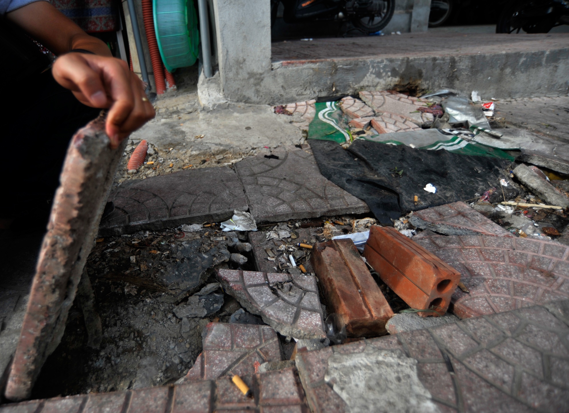 | Người dân ở khu vực này cho rằng cứ bong tróc với vỡ suốt thế này lấy gì làm niềm tin những viên thay mới sẽ bền vững lâu dài. |