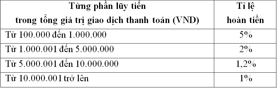 Theo chính sách mới, tất cả các giao dịch thanh toán bằng thẻ thanh toán toàn cầu VIB Debit MasterCard trong từng tháng của khách hàng sẽ được hoàn tiền tối đa lên tới 5% vào ngày 15 của tháng tiếp theo. Tỷ lệ hoàn tiền chi tiết như sau: