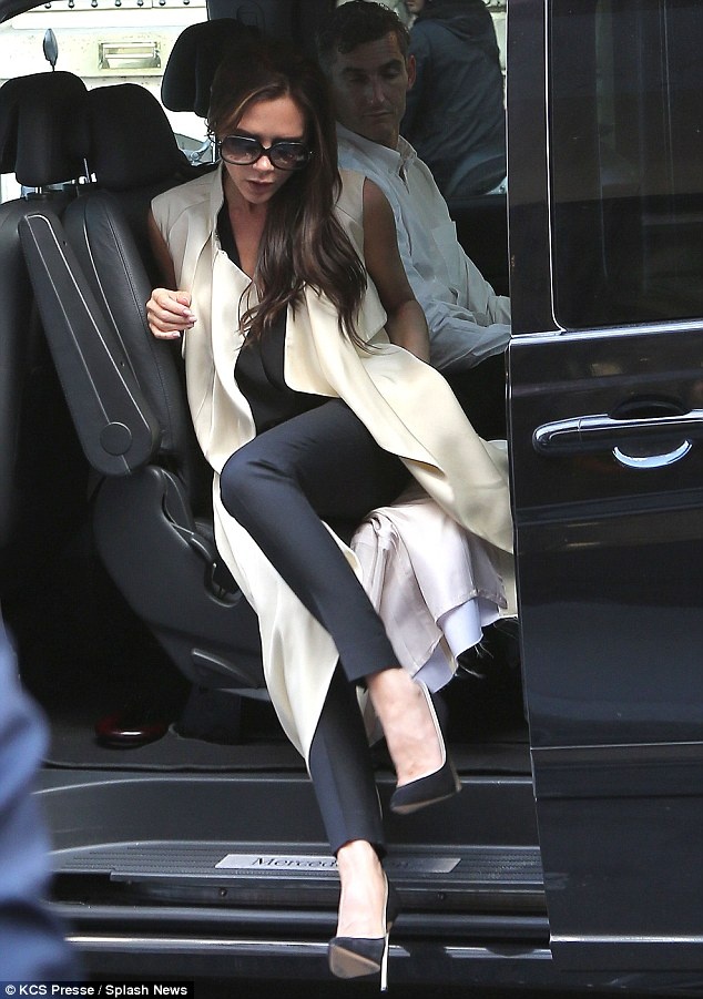 | Với những đôi giày cao gót, Victoria luôn phải thận trọng mỗi khi lên xuống xe. |