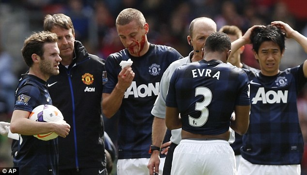 Trong một pha tranh bóng trên không phút thứ 28 của trận đấu, Vidic đã va chạm mạnh với với tiền đạo Rickie Lambert bên phía Southampton. Kết quả, sau khi ăn trọn cùi chỏ của đối phương, Vidic bị vỡ mũi, máu chảy đầm đìa khắp mặt. Nhân lúc Vidic còn đang choáng váng, chính Lambert đã sút tung lưới của M.U, mở tỷ số cho Southampton.