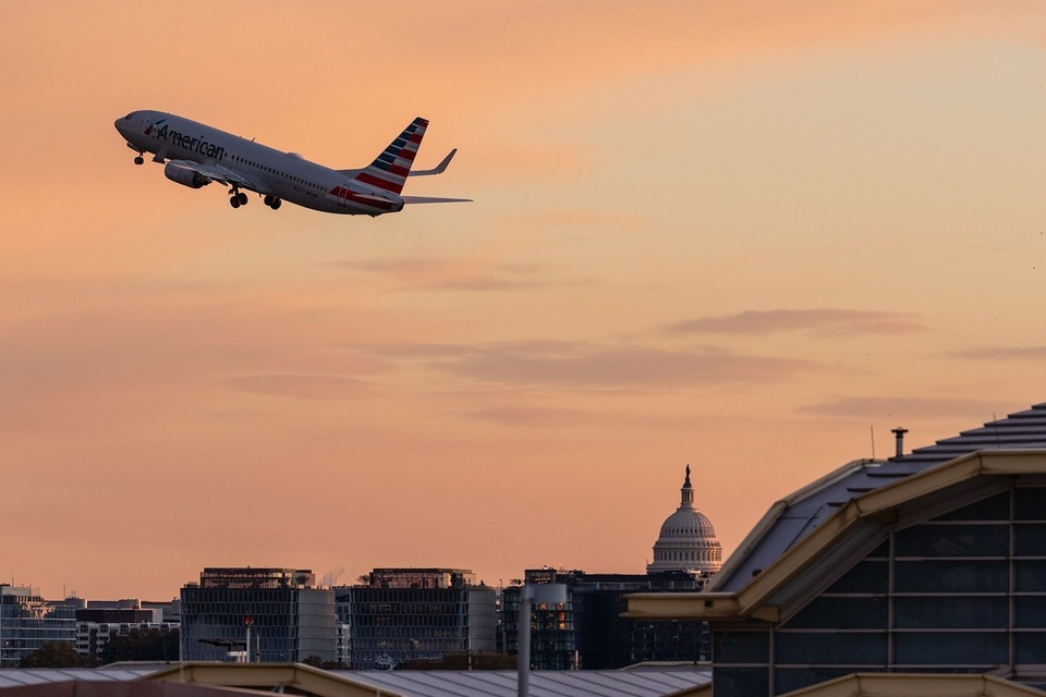 Máy bay cất cánh từ sân bay quốc gia Reagan Washington với tầm nhìn hướng về Tòa nhà Quốc hội Mỹ. Ảnh: Eric Lee. |
